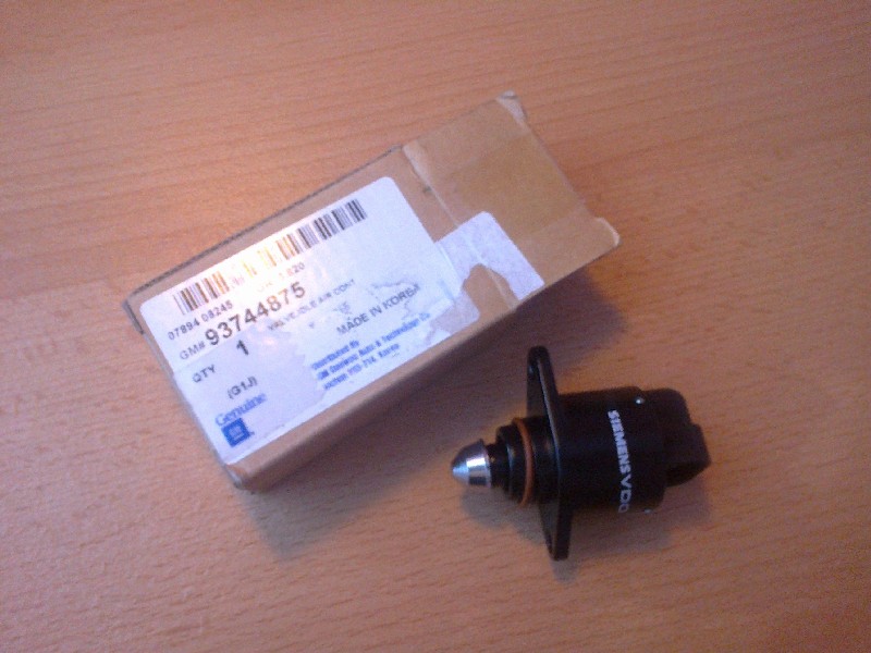 Toto je podľa mňa krokový motor (v CHEVROLET TIS to volajú regulačný ventil voľnobežných otáčok /IAC/ a v angličtine VALVE-IDLING AIR CONT) OEM číslo: 93744875 A toto je klapka: