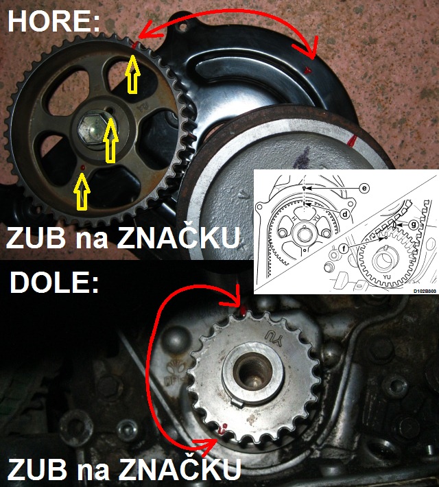 Po napnutí rozvodů je třeba zkonrolovat sestavení tak, že motor protočíte přes kliku a vždy se musí všechny značky (na klice a na vačce ) zas sejít přesně na ryskách-značkách nejlépe vše protočit a zkontrolovat 2x - 3x .....