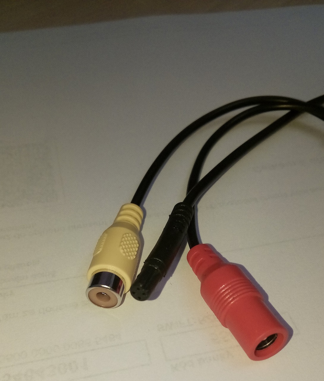 Jedná se o výstup ze zadní kamery, který bych něják potřeboval zredukovat do červeného/žlutého konektoru - ale do samců, na fotce jsou vidět samice z jiné kamery..