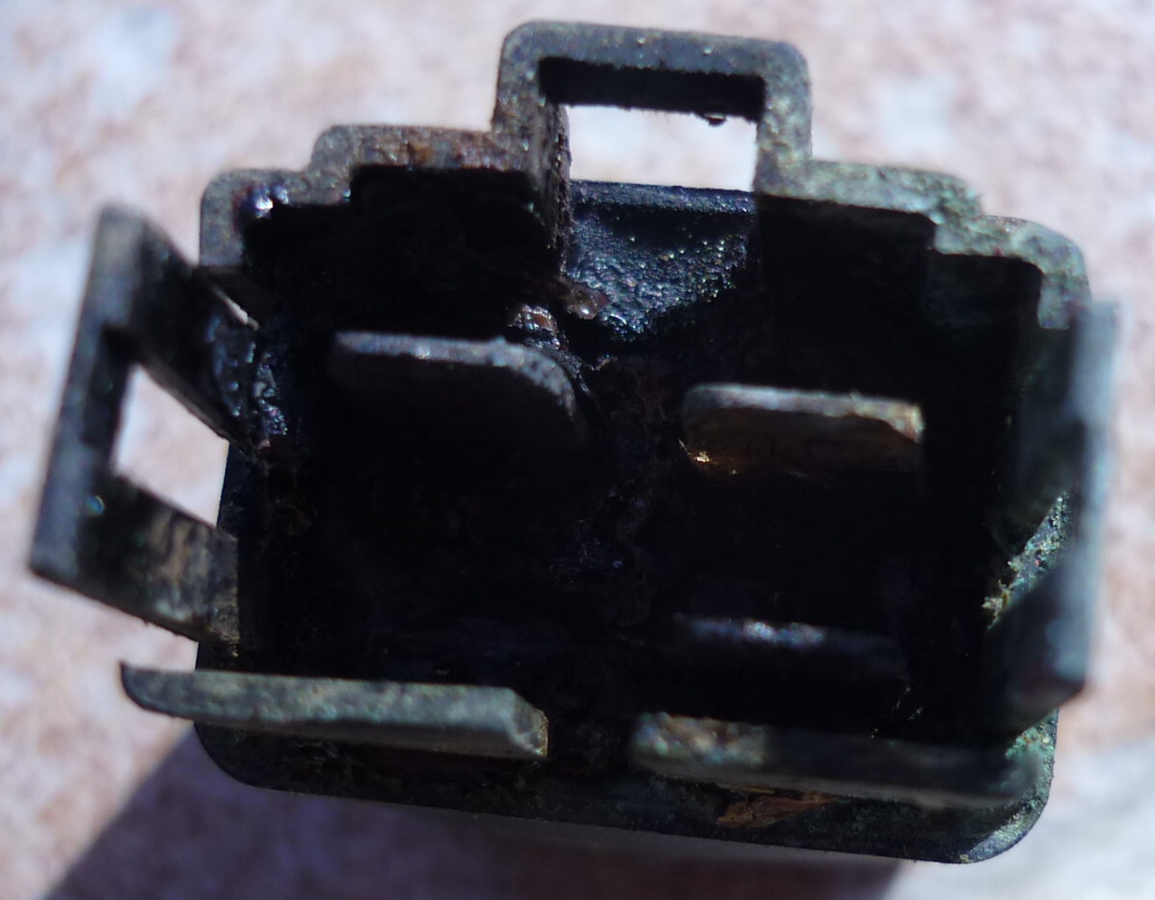 Relátko je obdélníkový, má čtyři konektory. Já jsem měl jeden kontakt upadlý a vnitřek byl vyhřátý.