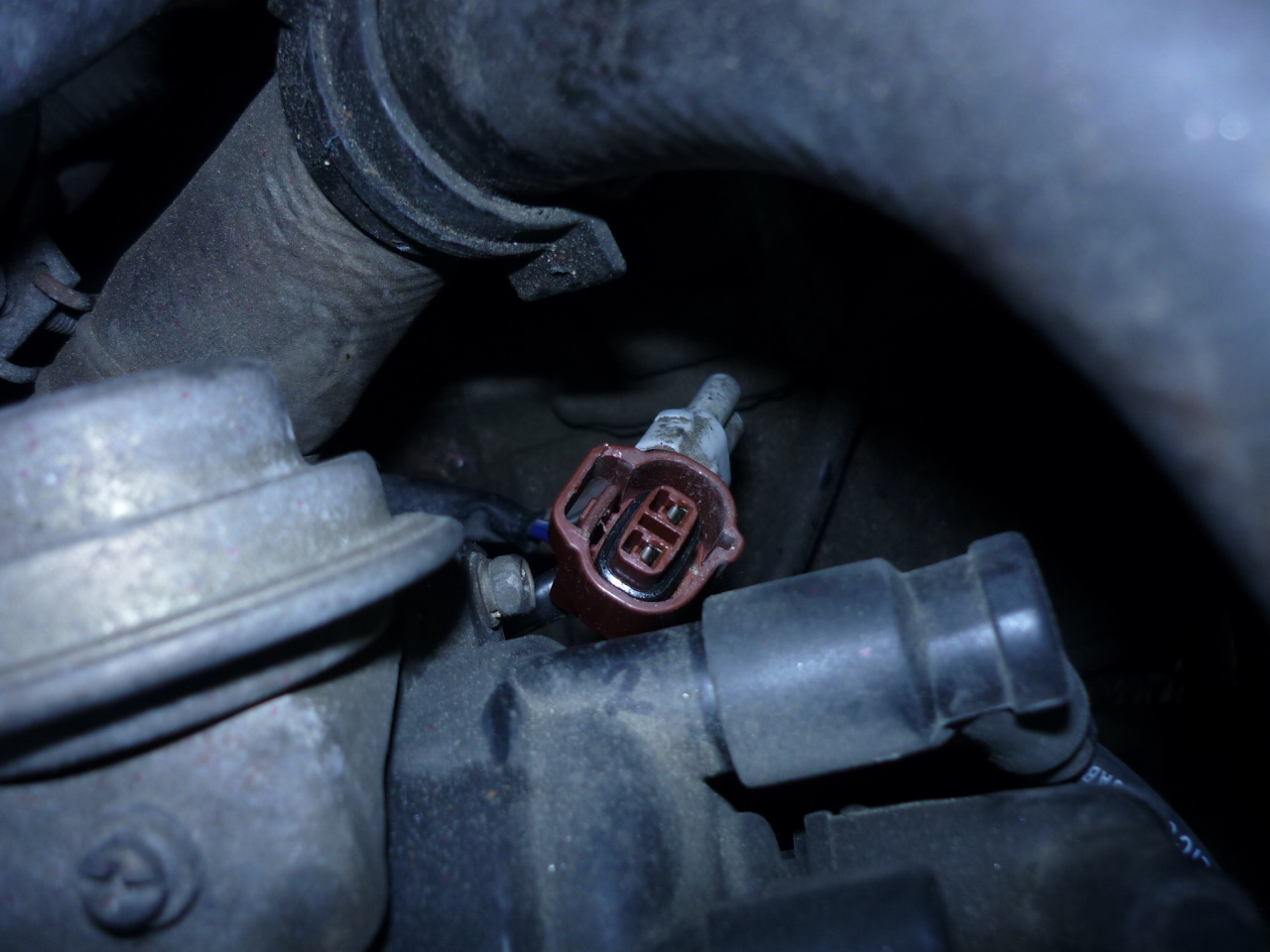 Přesně tak, konektor teploty je dole vedle alternátoru.