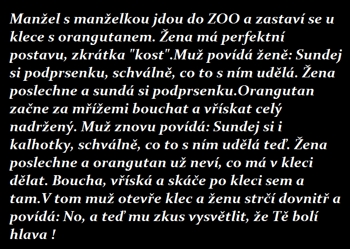 # Klid miláčku! - utešuje ho manželka. Naliju ti panáka slivovičky. Ta tě