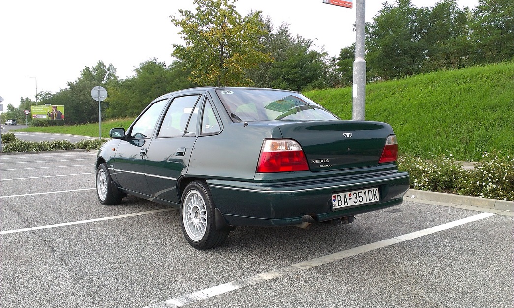 Jedna sa o Daewoo Nexia 1.5 8v GLE sedan v tmavo-zelenej metalize, najazdenych km to ma 104 450, je tam origo radio, klima, 4x el. okna, auto mame od novoty 18ty rok v rodine, naucil som sa na nom soferovat, momentalne pripadlo mne, kedze sme kupili nove auto do rodiny. Nejsom nejaky Daewoo fanatik, Nexia mi moc nesedi, vela to zere, ale tak darovanemu konovi na zuby nekukaj
