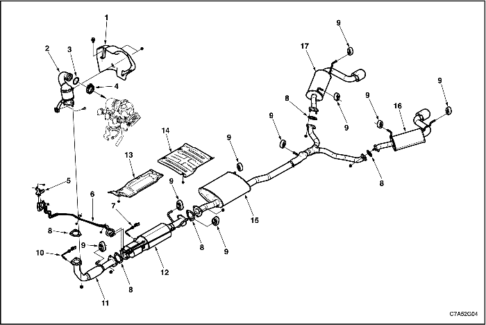 Na obrázku výfukového systému to jsou pozice 7 a 10