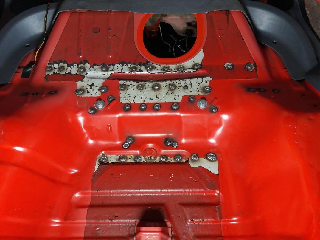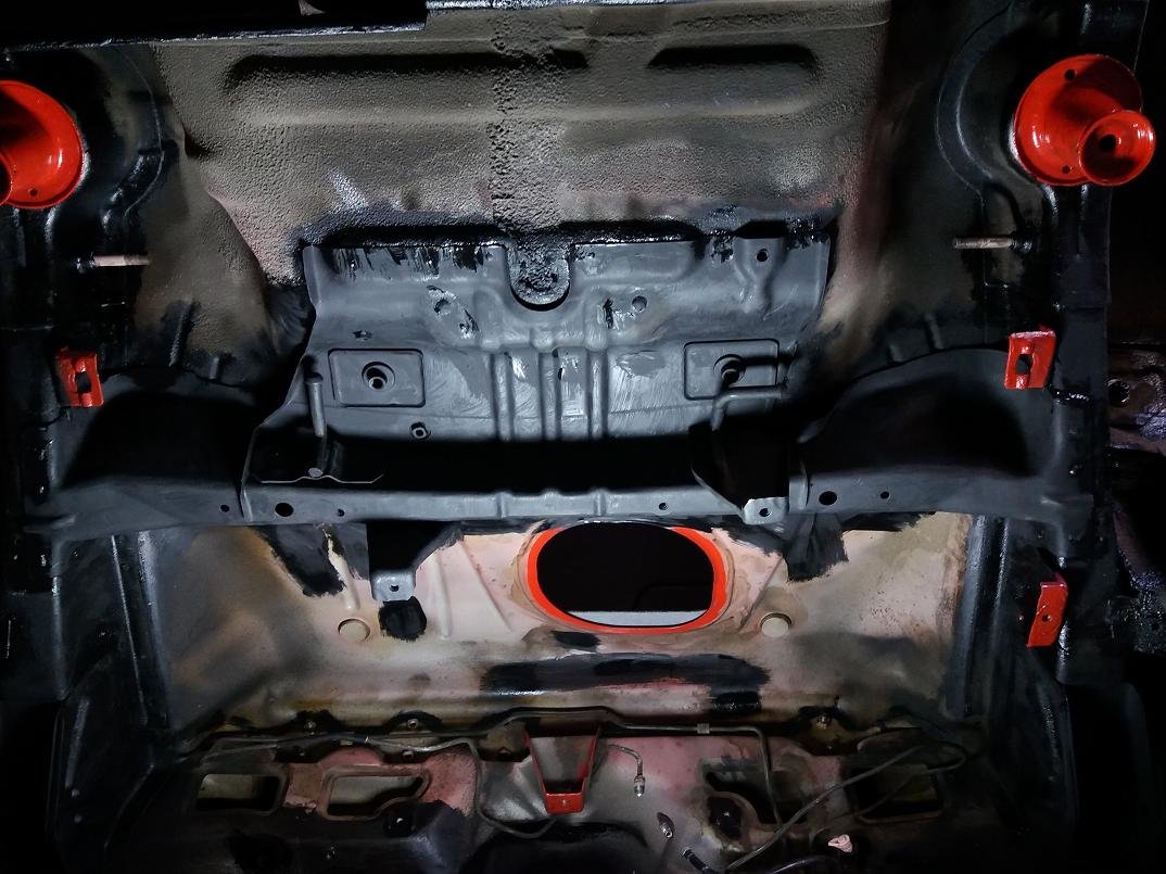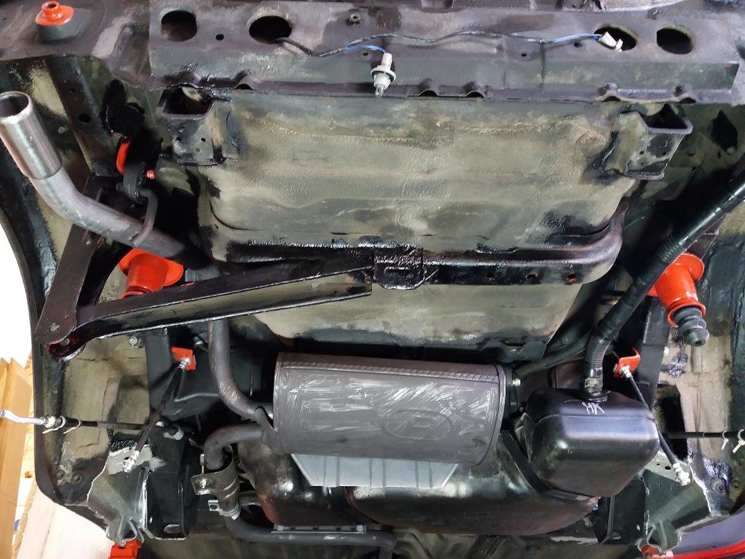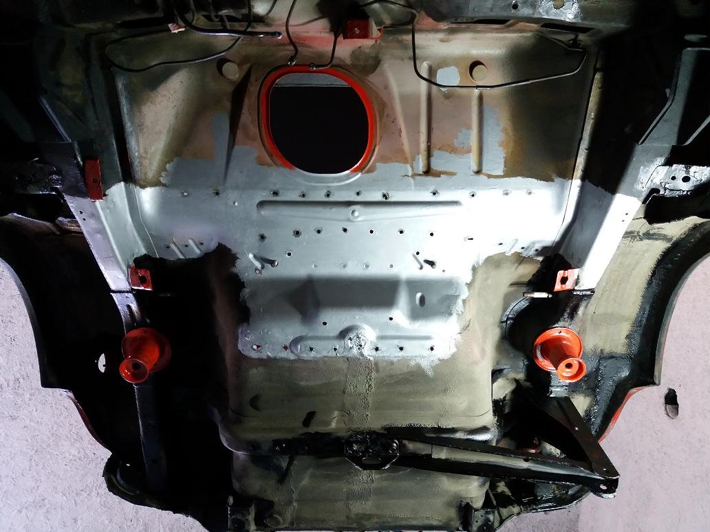 Karosériu nad zadným priečnym nosníkom som natrel strieborným alkytonom.