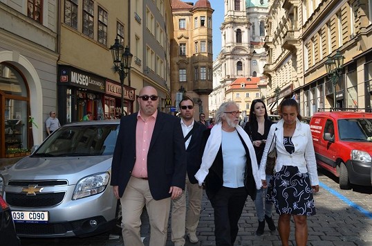 Velký blondýn s černou botou Pierre Richard 25.4. na procházce Prahou zastiňoval Orlando