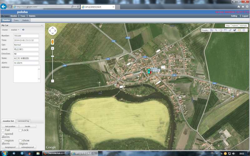 Taky jsem konečně sprovoznil GPS alarm. Zatím jen ukazuje polohu auta, nedaří se mi naprogramovat SMS ovládání auta. Ale aspoň něco.