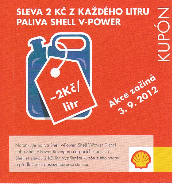 Pánové, slevu 2 Kč/litr dostanete pouze po předložení kuponu. Kupon najdete pouze v katalogu, který si koupíte přímo u pokladny a stojí 24,- Kč nebo vám ho dají za body uložené na vaší Clubsmart kartě a to za rovných 50 bodů. Platnost kuponu je do 31.10. 2012. Na jeden kupon lze natankovat maximálně 70 litrů. Při jednom natankování lze uplatnit pouze jeden kupon. Dole na obrázku máte kupon a titulní stránku jejich katalogu.