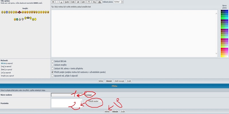 Jinak stačí kliknout na Odpověď , otevře se Ti okno a dole klikneš na "Procházet" a vyskočí ti okno a v počítači si najdeš fotku, kterou chceš vložit a označíš ji. Pak klikneš na "Přiložit soubor" , který se Ti nahraje a zkontroluješ si fotku, že klikneš na "Náhled" a pokud budeš spokojený dáš "Odeslat"