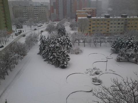Tak v Praze opět kalamita jak na Sibiři - 3cm sněhu u muzea 4.