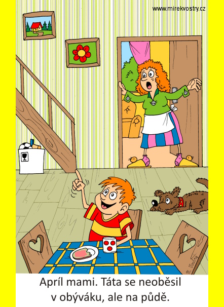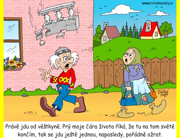 Žena jde na gynekologickou prohlídku. Vejde do dveří, svlékne se, usadí se do křesla. V pootevřených dveřích se jen mihne bílý plášť a ozve se: ,,Vejš!"