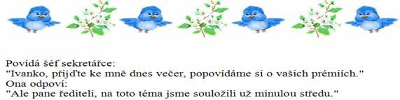 Ten dostane zaucho, učitelka se ale ptá: "A copak to tedy je?" "Květy."