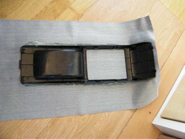 Konzoli očalouním a pak do ní vlepím ten chromový rámeček. Celej ho pod tou koženkou zaleju epoxidem.