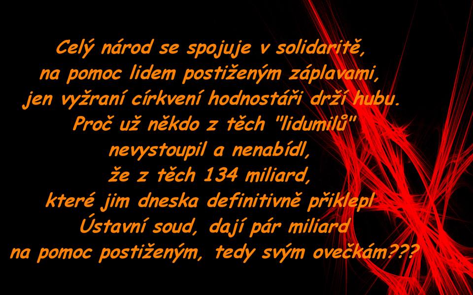 Když Vás , ale požádá slušná důchodkyně u Tesca o peníze, protože nemá na léky a rodina na ni s... Něco není v pořádku. A jelikoš "komunističtí" důchodci budovali, nechápu, že tato zasran.... vláda je nechá žebrat o peníze protože nájmy jsou 80%ˇdůchodu a zbytek nechají pochcípat jak psy doma v bytech. Chtěl bych vrátit čas a zeptat se válečných veteránů jestli by za tento superbordel a superhajz.... bojovali . Myslím, že by mne dali do blázince, protože to co je teď tomu by snad před 50 lety uvěřil jen blázenn a já nejsem takovej blázen abych šel jak ovce podle toho do kterýho boku mě kousne ovčáckej pes.