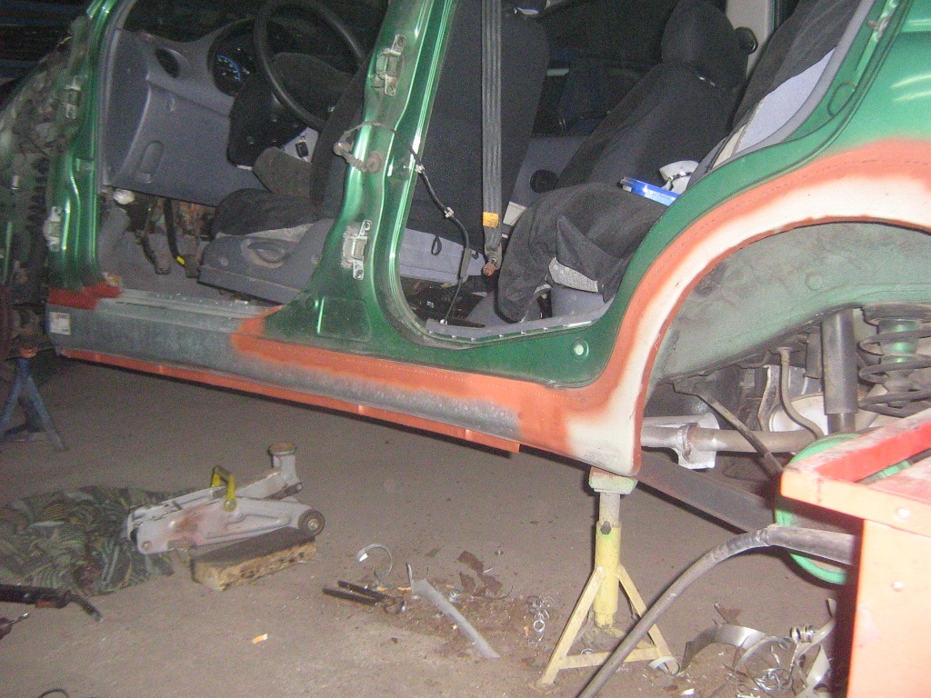 ) Dále uplně odrezl kryt převodovky. A momentálně mm vyrezlé oba zadní lemy. Teď hrozí že v dešti mi bude pravou stranou zatékat voda do kufru
