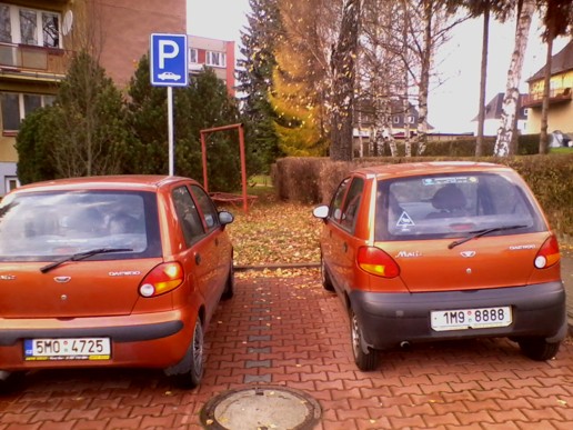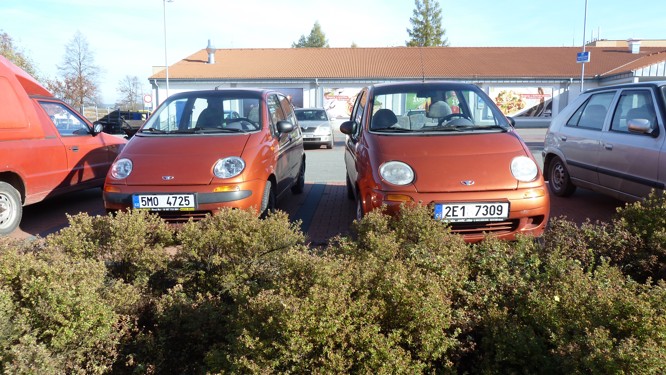 otvírám novou fotorubriku MATIZ dvojčata. Jak vidíte, chce to jenom pohotově zaparkovat vedle někoho, kdo má stejného Matesa jako vy a pak jen vyfotit.