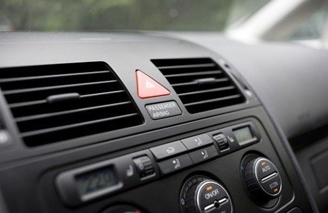 2. Naštartujte motor, zapnite ventilátor na maximum. Zapnite vnútorný obeh – nastavte klímu na