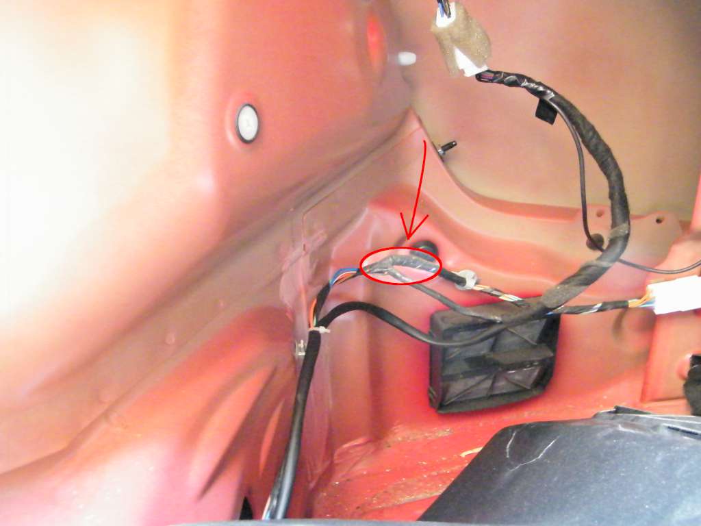 V kufru, na leve straně sundej tapec. A tam přiletuj dráty k zásuvce.