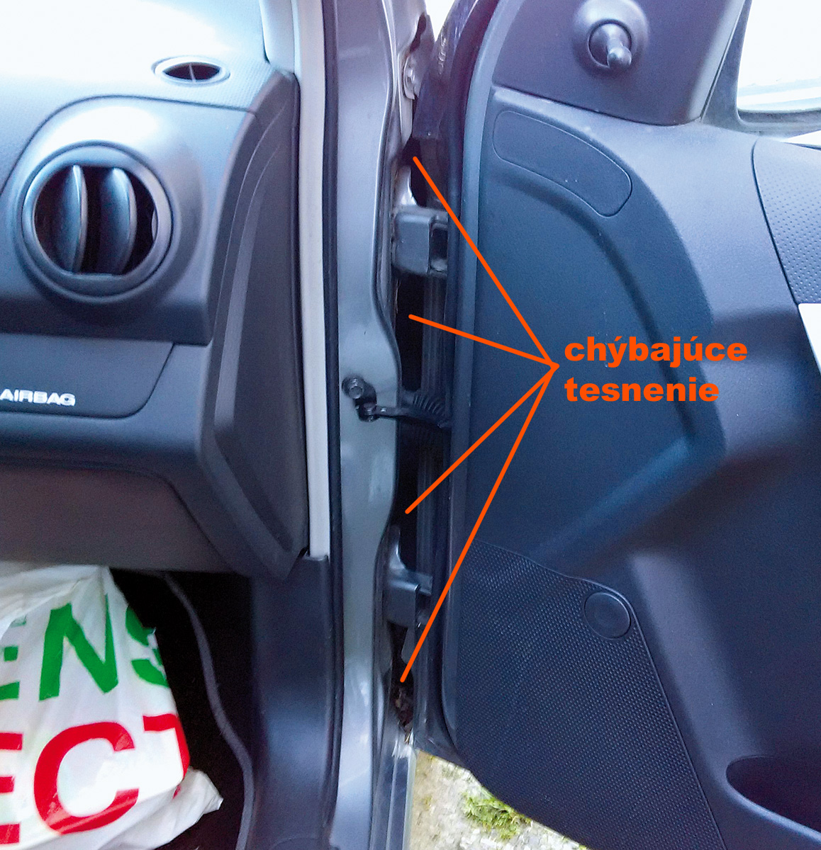 Chýbajúce tesnenie predných dverí / blatníka