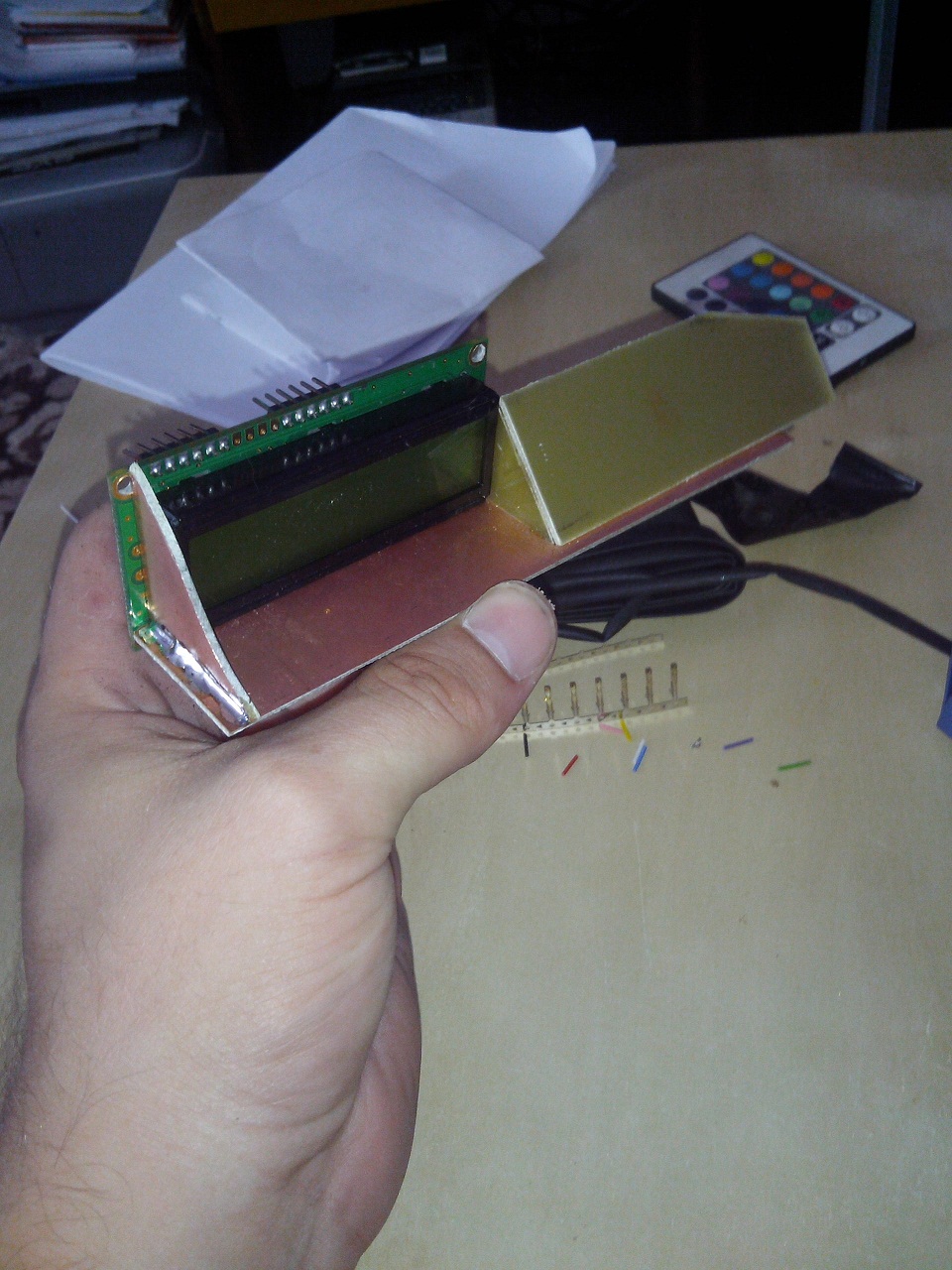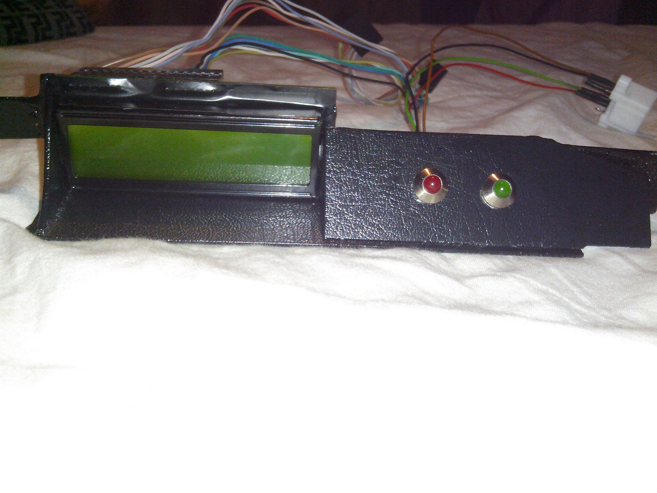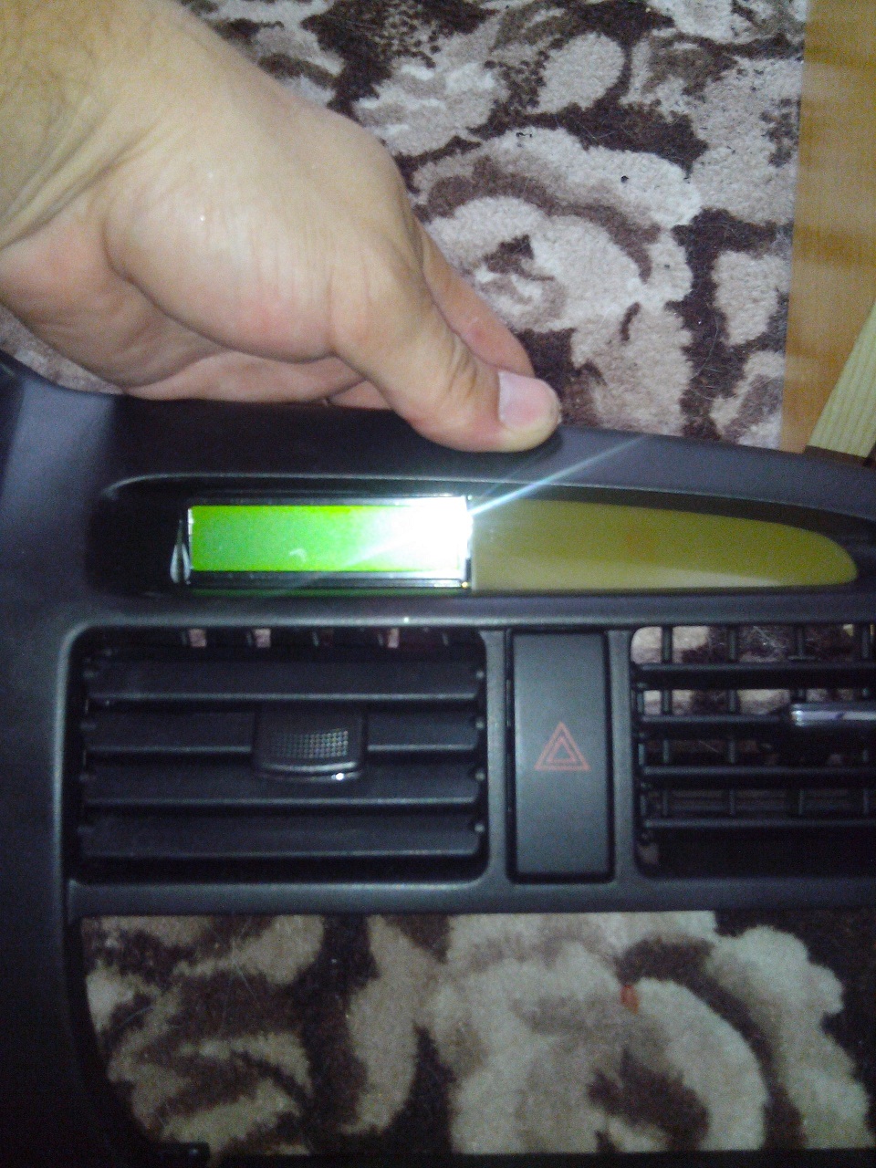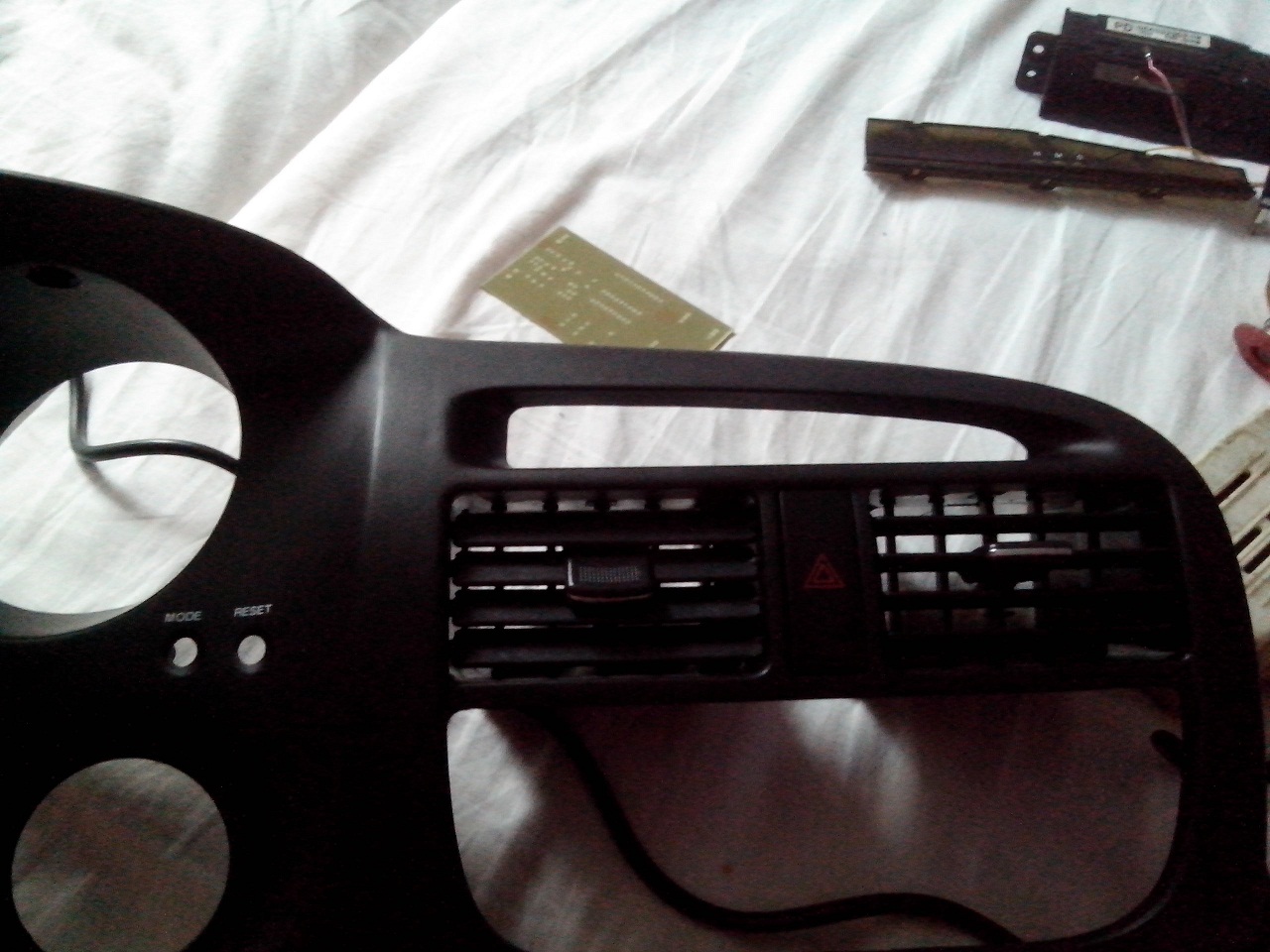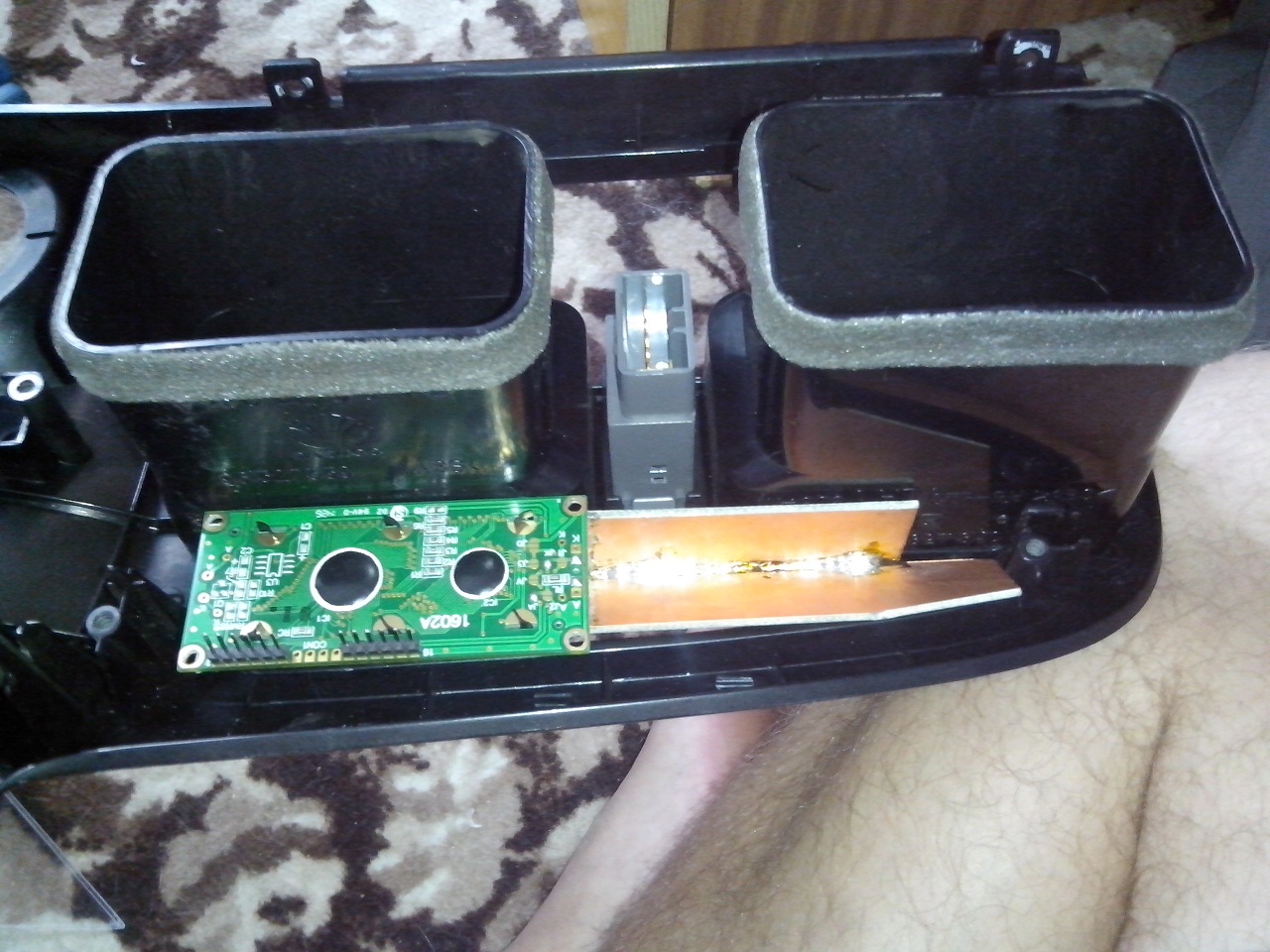 hned jsem se dál do montáže. Umístění jsem vybral místo hodin které jsem zdemontoval a vyrobil si držák displeje. Elektroniku jsem schoval v krabičce v místě za hodinama. Zapojení jsem použil vodiče za budíkama. Je potřeba vodič palivoměr, tachometr, otačkoměr, Bat +, Bat od kličku, gnd, a jeden vodič na jeden vstřikovací ventil. Dávam i pár foteček :PP: