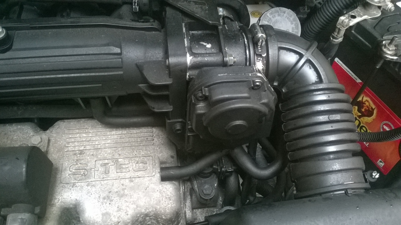 Děkuji za odpověď. Myslel jsem, že je to těleso škrtící klapky. Tu jsem měl dole a celou ji čistil. Je u toho i plastový nebo kovový "deklík" zajištěný šroubky. Označený šipkou.